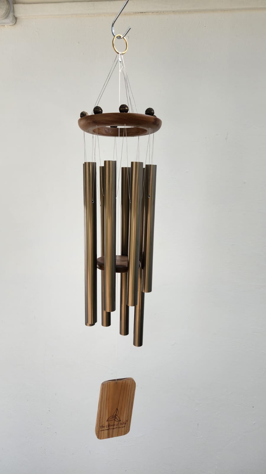 This is the basic wind-chime built out of aluminium tubes that are one inch in diameter. The thickness is chosen for a specific pitch that is pleasant to the ear.